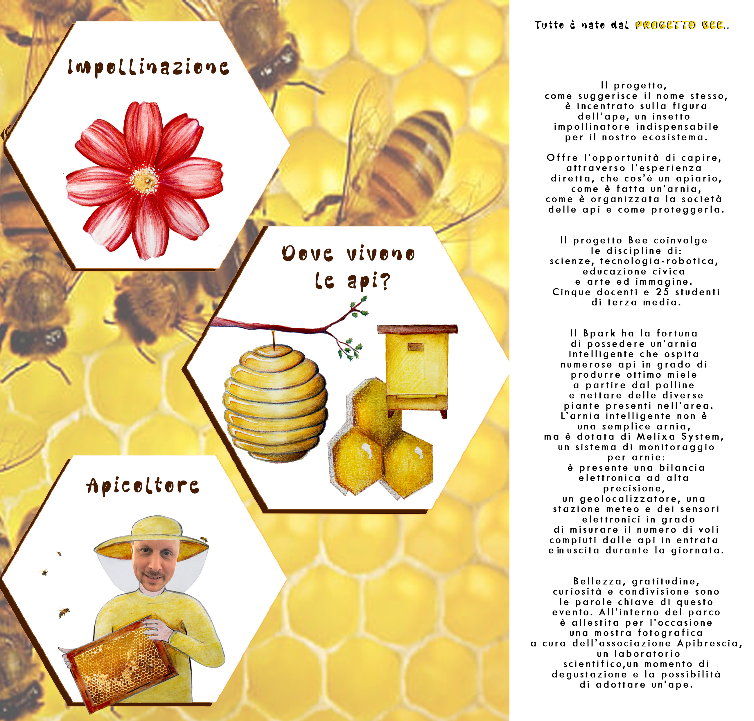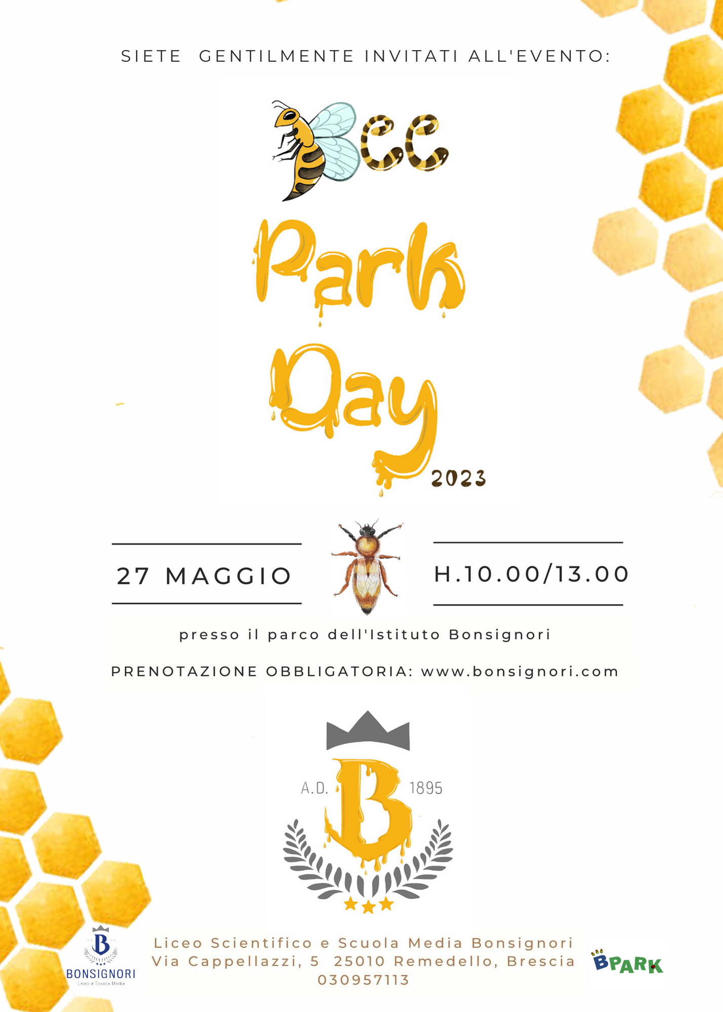 La Scuola Secondaria di Primo Grado Bonsignori, in particolare 25 studenti di 3°A e 3°B, sono lieti di invitarvi all’evento più giallo e nero dell’anno. In questo periodo le api del nostro BeePark si danno un gran da fare, tutto è in fermento. I ragazzi si dedicano a: pulizie, tinteggiature, scoperte, gite, incontri, creazioni, arte, scienza, educazione civica, tecnologia e robotica. Tante competenze per un solo obiettivo: valorizzare al meglio l’importanza e la bellezza delle nostre api e del nostro parco. Saranno ospiti e parte integrante della giornata: l’associazione Apibrescia di Brescia e un esperto entomologo dell’Istituto zooprofilattico di Brescia.